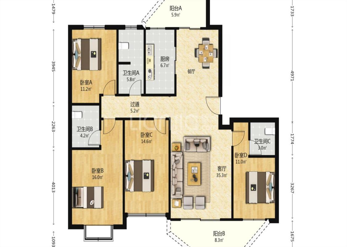 4室2厅 瀚海尔湾