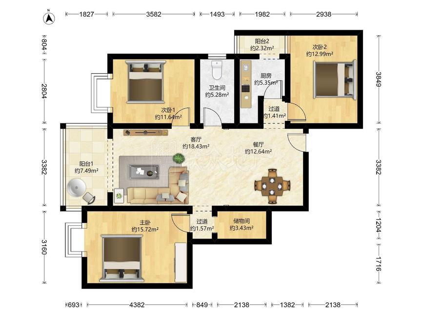 3室2厅 玺萌丽苑