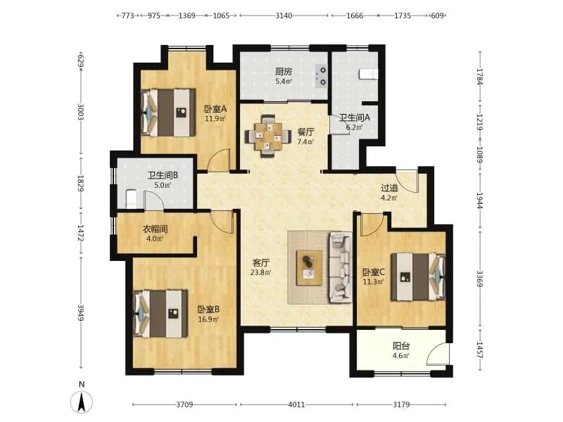3室1厅 远洋风景