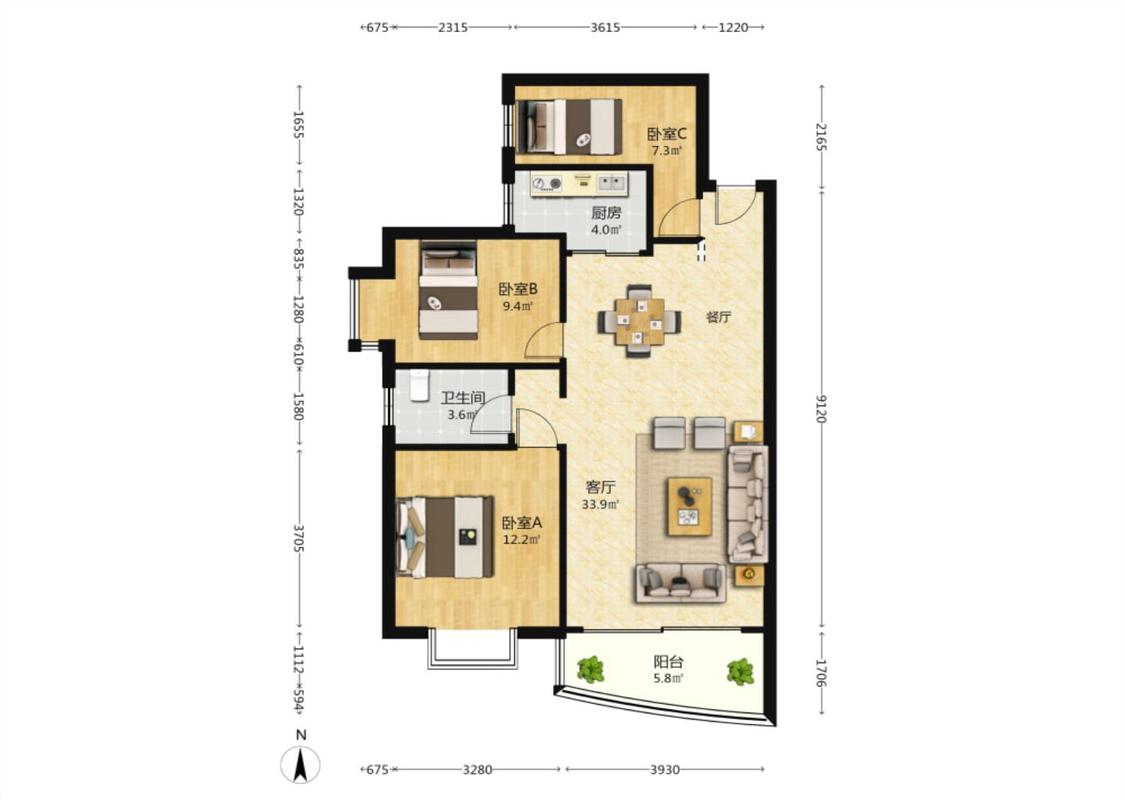 3室1厅 嘉盛豪园(南区)