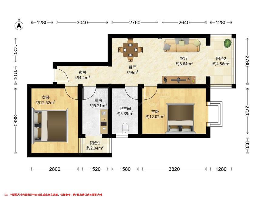 2室2厅 玺萌丽苑