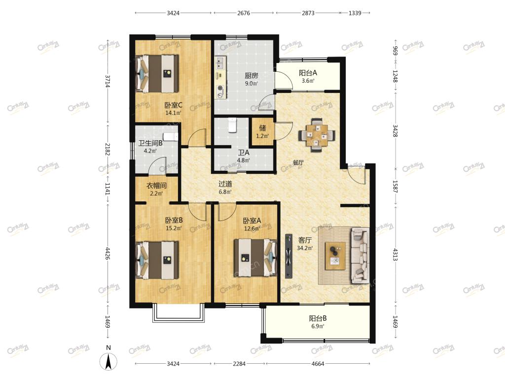 3室2厅 紫薇田园都市(C区)