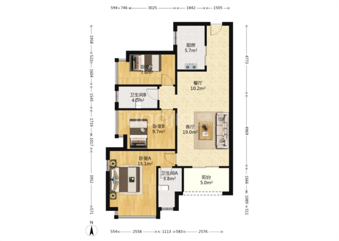 3室2厅 万科中央公园(一期)