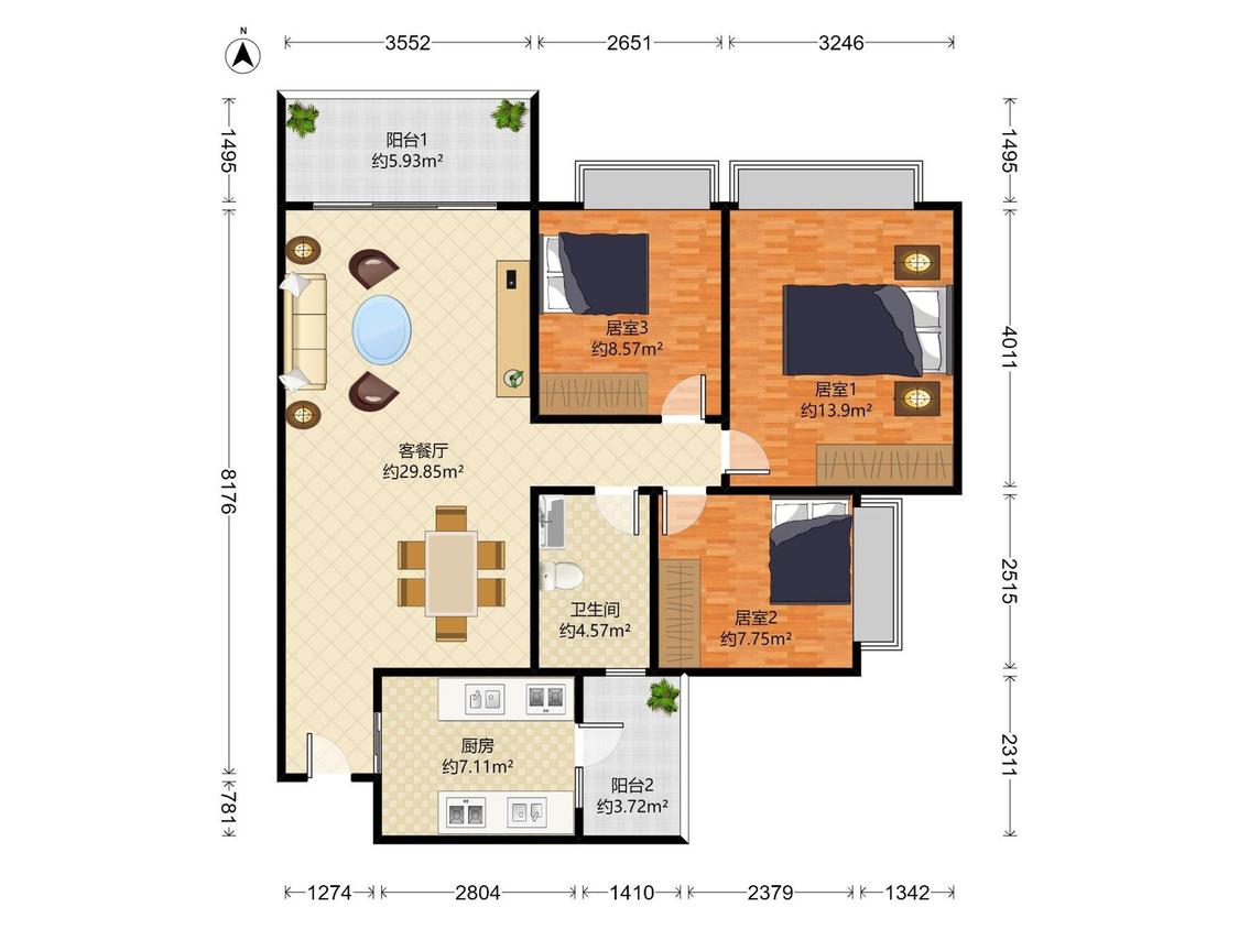 3室2厅 凯茵新城(雅湖居)