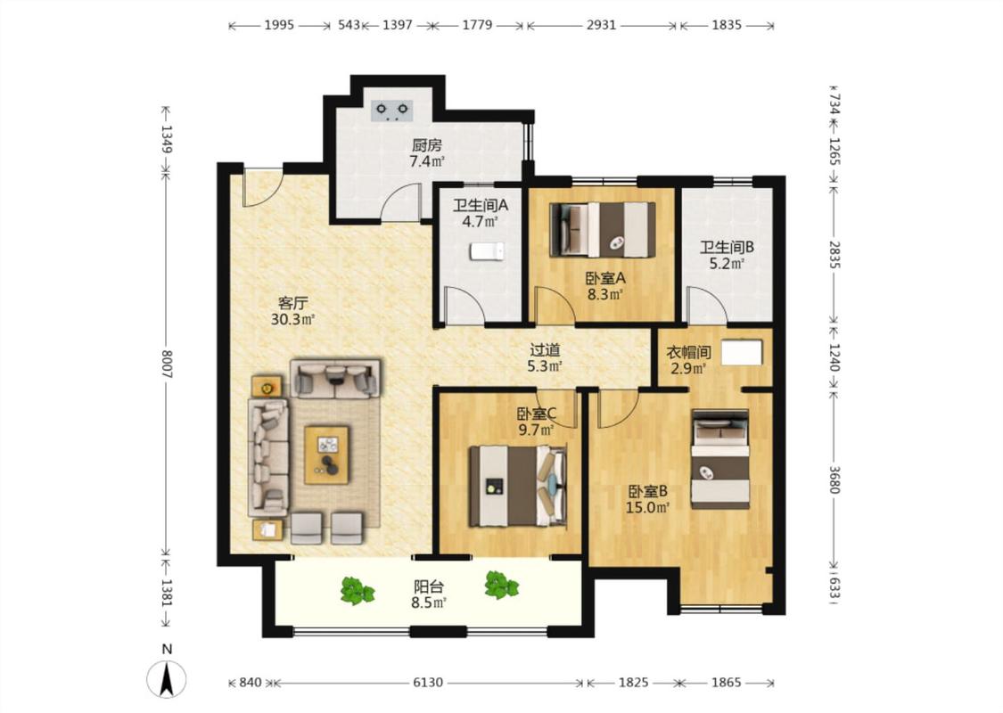3室2厅 拉菲公馆