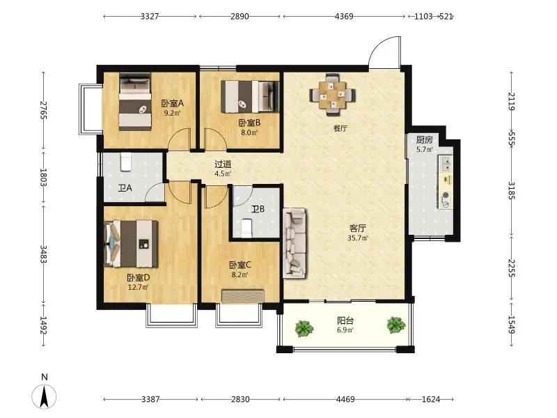 4室2厅 瑞鼎城