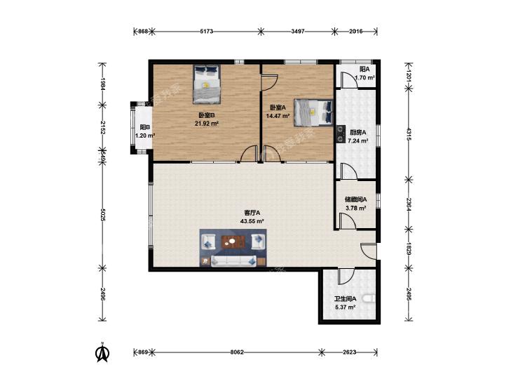 2室1厅 润枫德尚苑