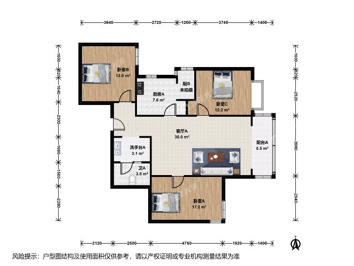 3室1厅 嘉铭桐城(C区)