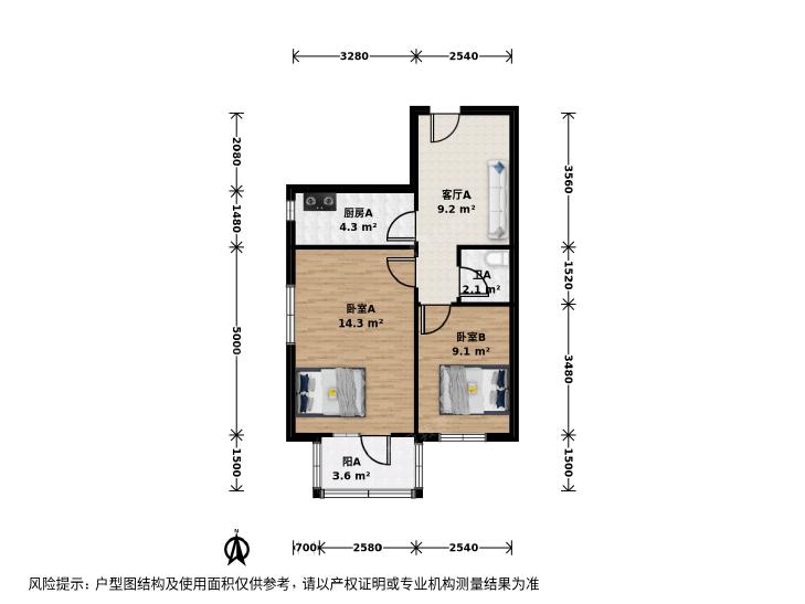 2室1厅 中国科学院黄庄小区