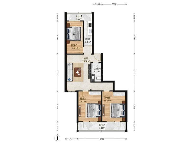3室1厅