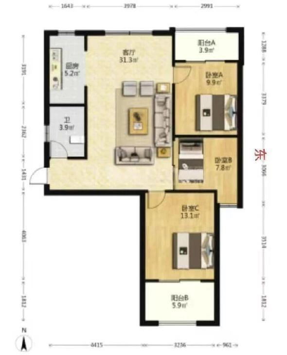 3室2厅 保利六合
