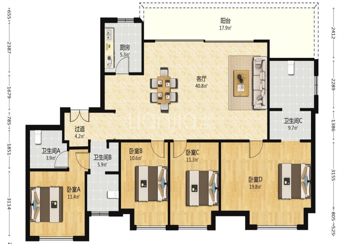 4室2厅 阳光城尚东湾凌云府