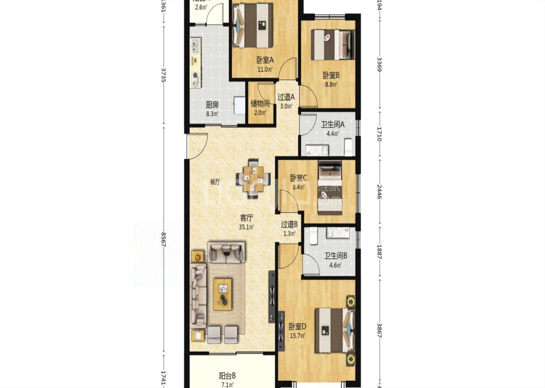 4室2厅 恒大雅苑