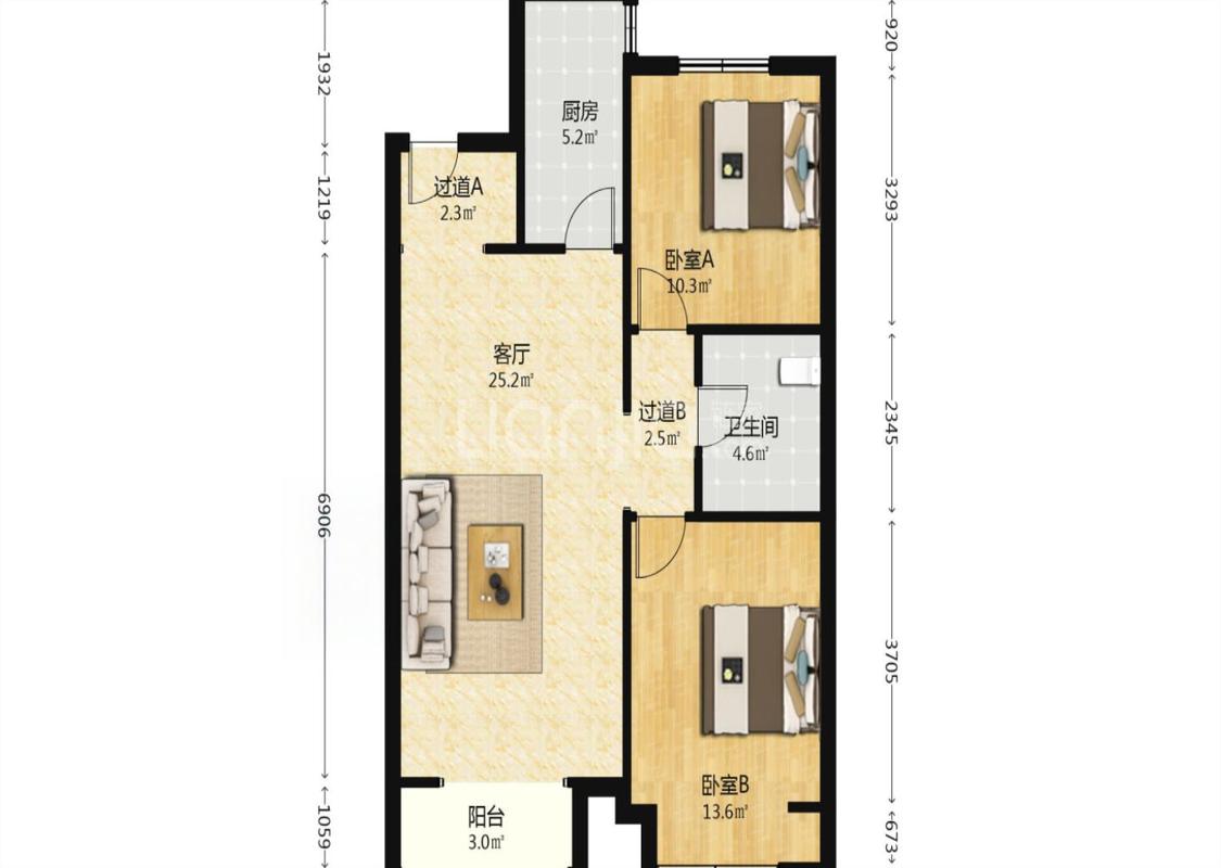 2室2厅 万科金域国际