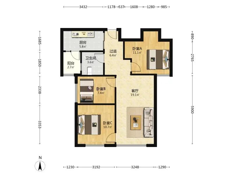 3室2厅 中民仁寿里