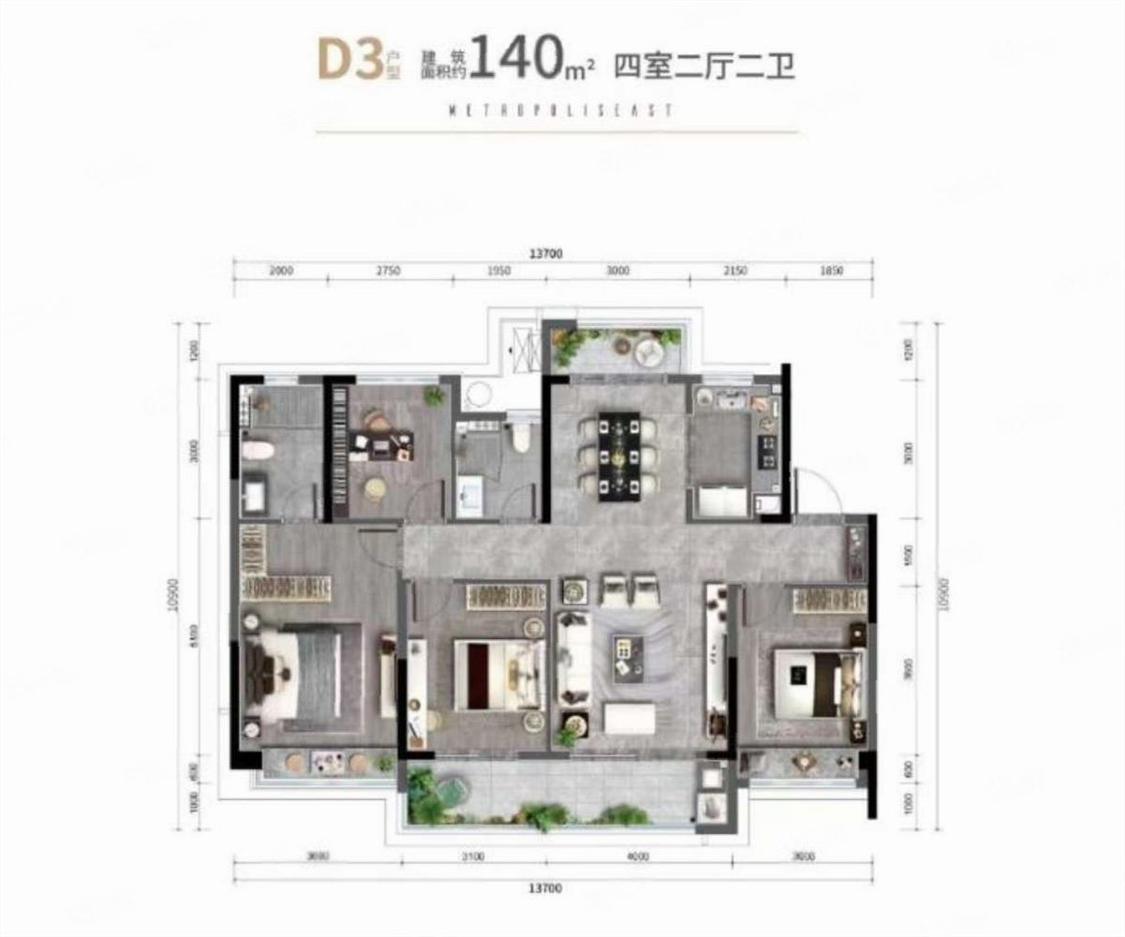 4室2厅 万科都荟府