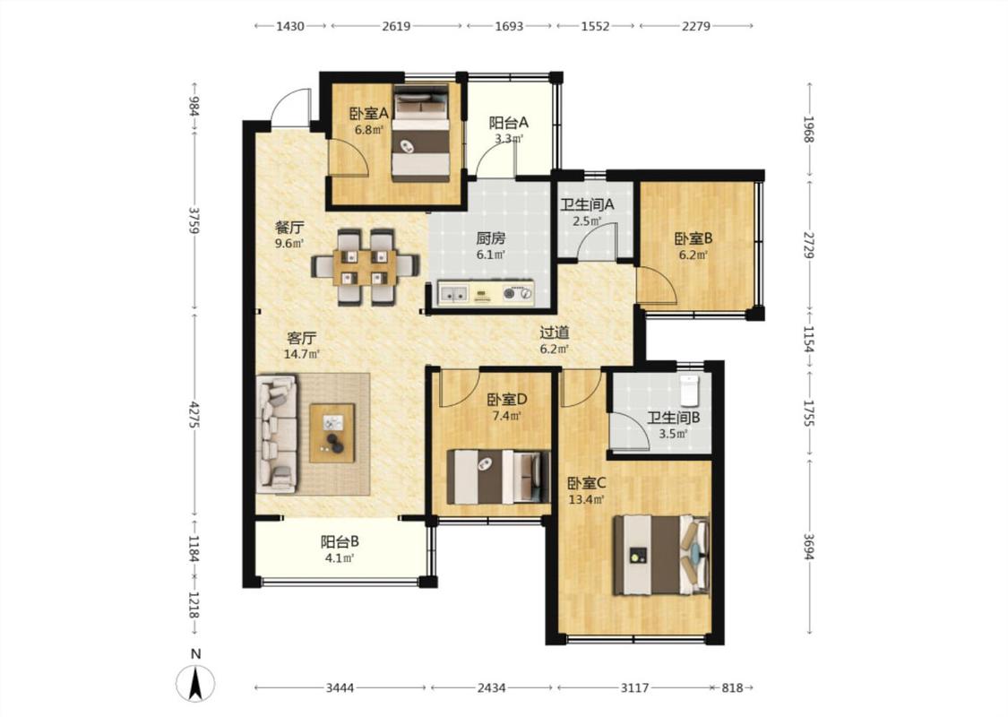 4室2厅 荣和千千树