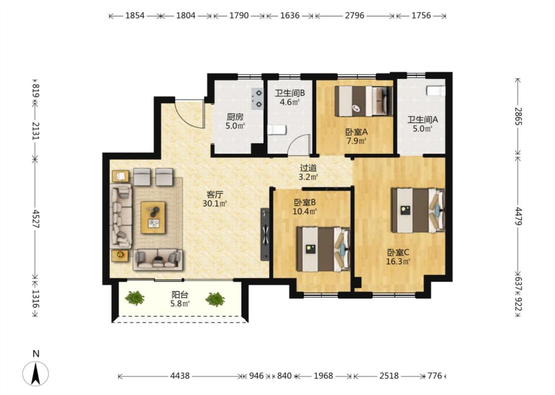 3室1厅