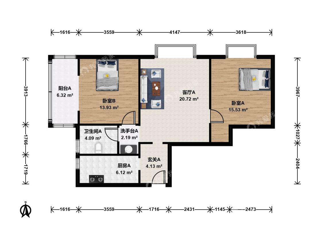 2室1厅 北方三角洲