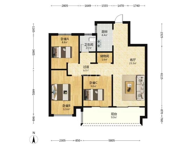 3室2厅 世茂时代云著