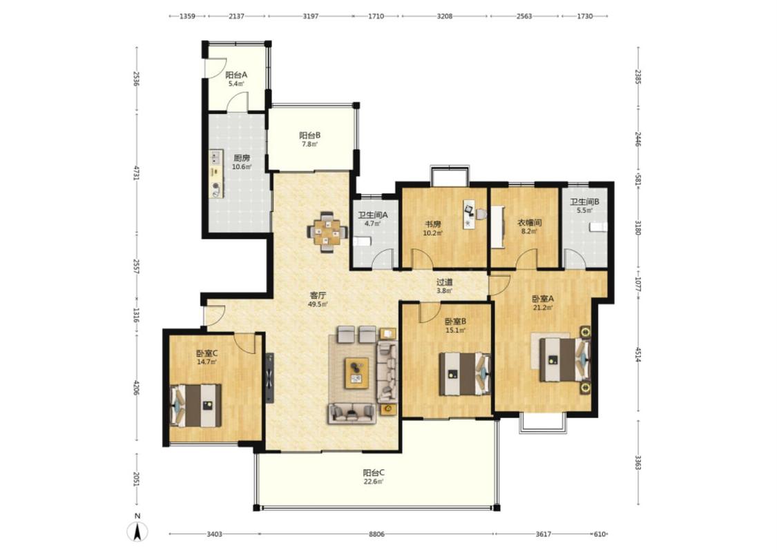 4室2厅 国贸蓝海