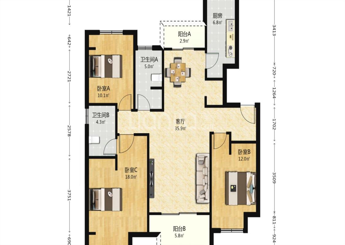 3室2厅 万科美的璞悦山