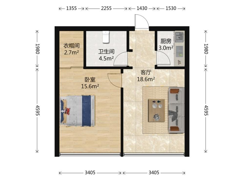 1室1厅 托乐嘉单身公寓