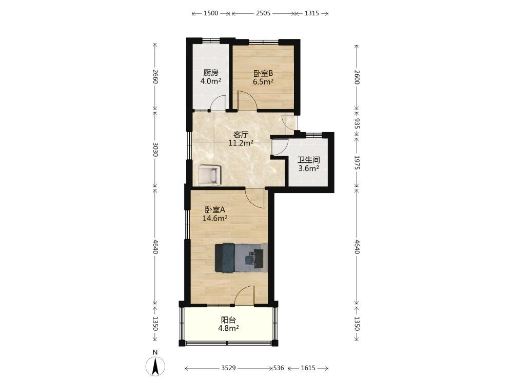 2室1厅 梅岭小区