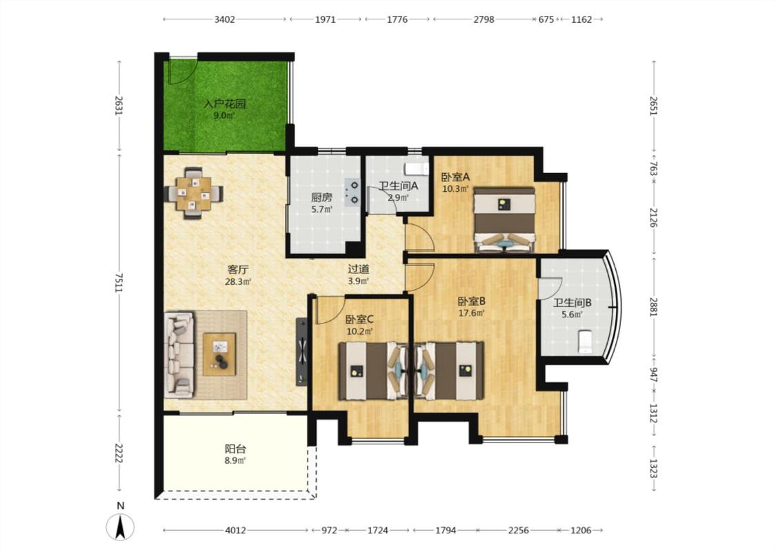 3室1厅 凤城世家
