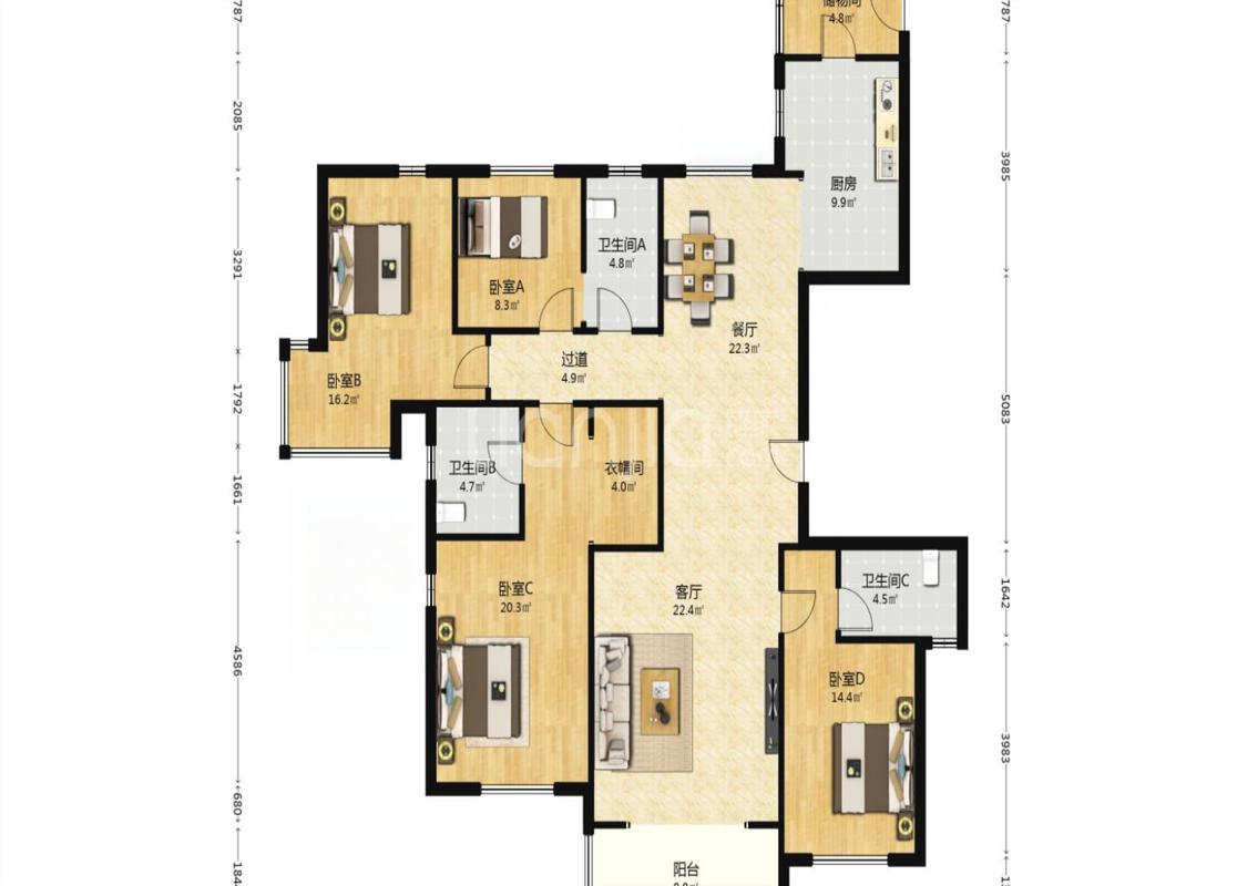 4室2厅 白桦林团圆