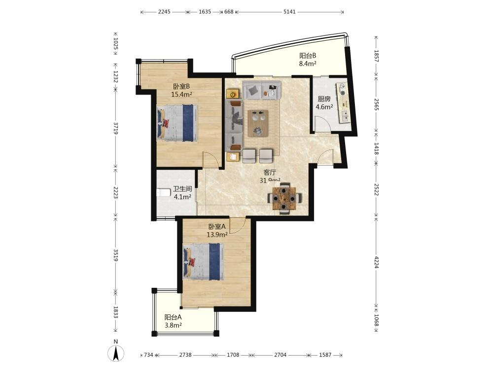 2室1厅 紫金银座