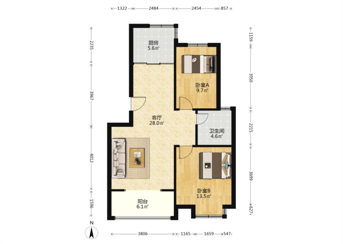 2室1厅 华美风景园(二期B区)
