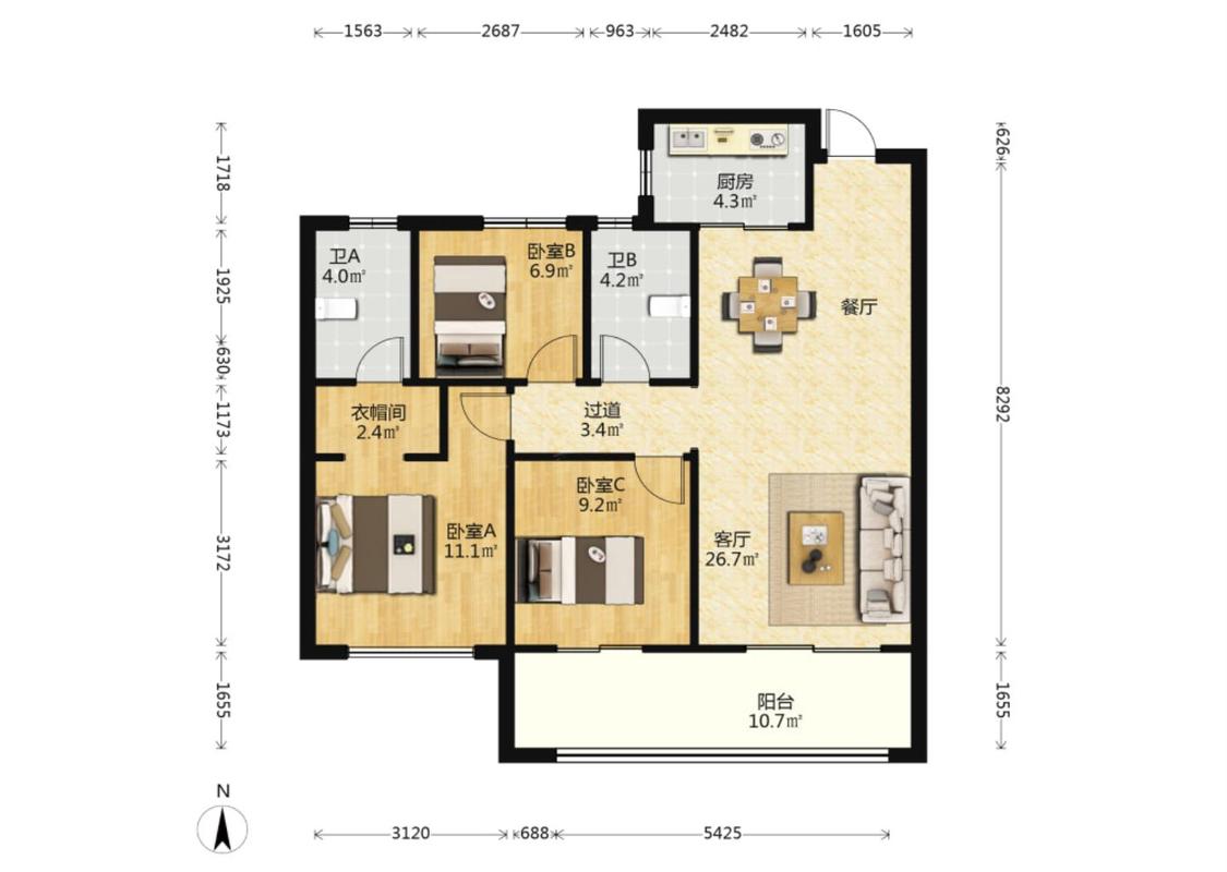 3室1厅 北辰府