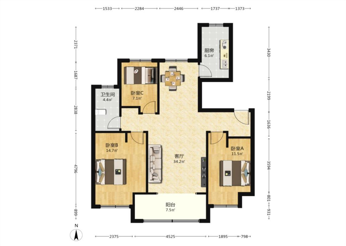 3室1厅