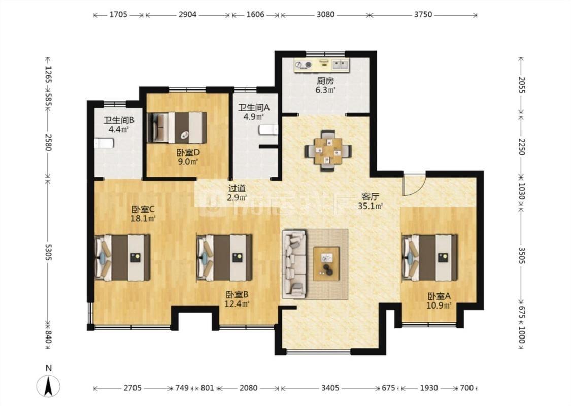 4室2厅 奥园天誉长兴