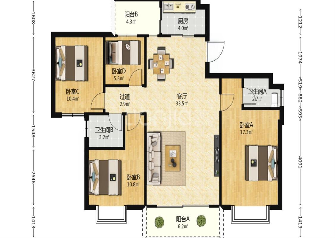 4室2厅 时代城