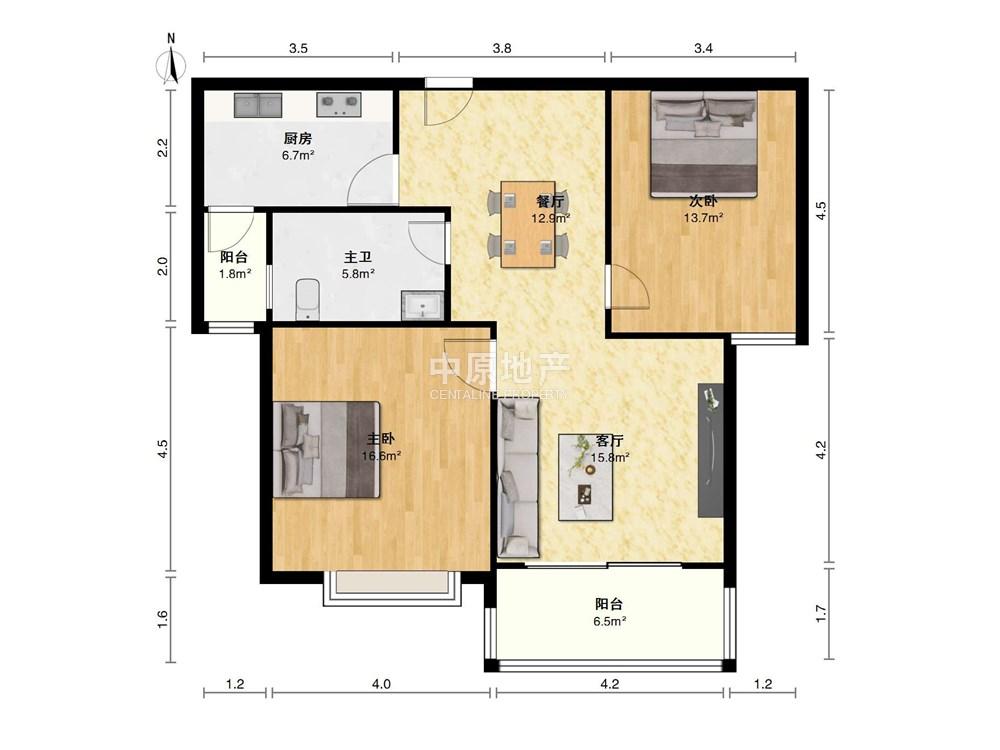 2室2厅 宝华现代城(一期)