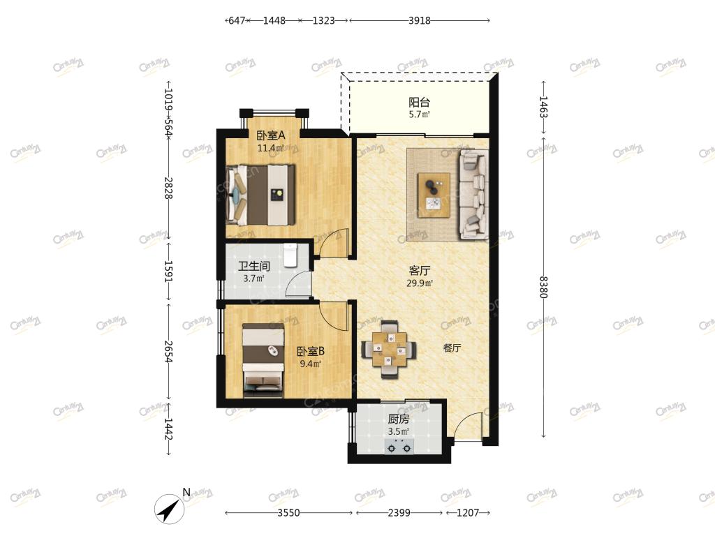 2室2厅 宇宏健康花城