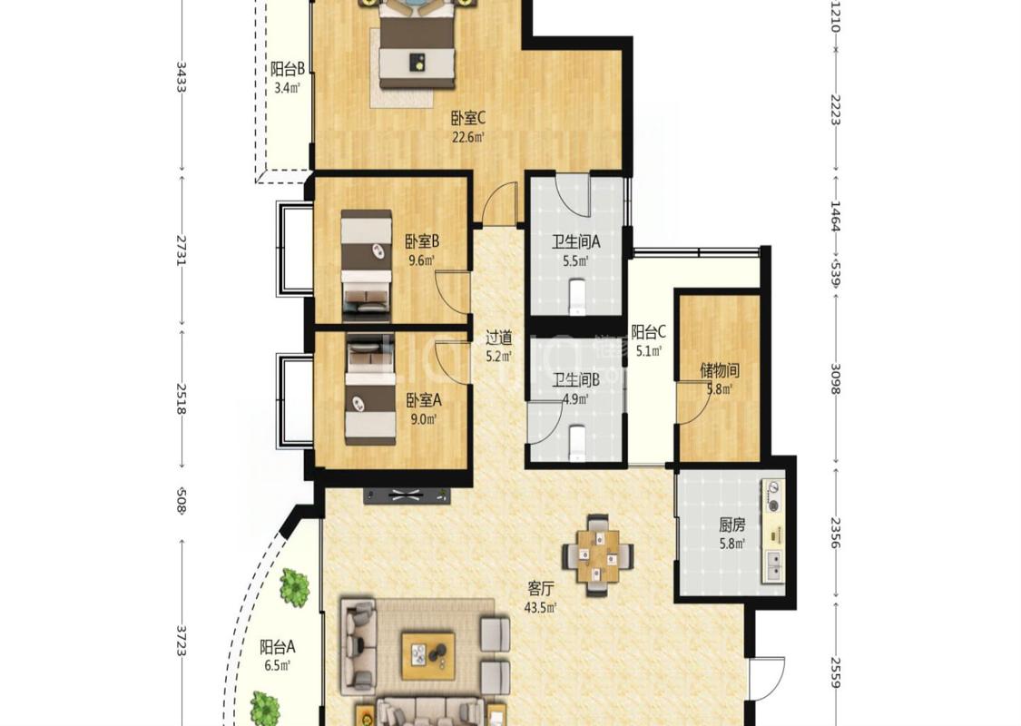 4室2厅 世贸雅苑