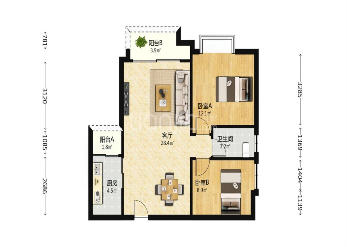 2室2厅