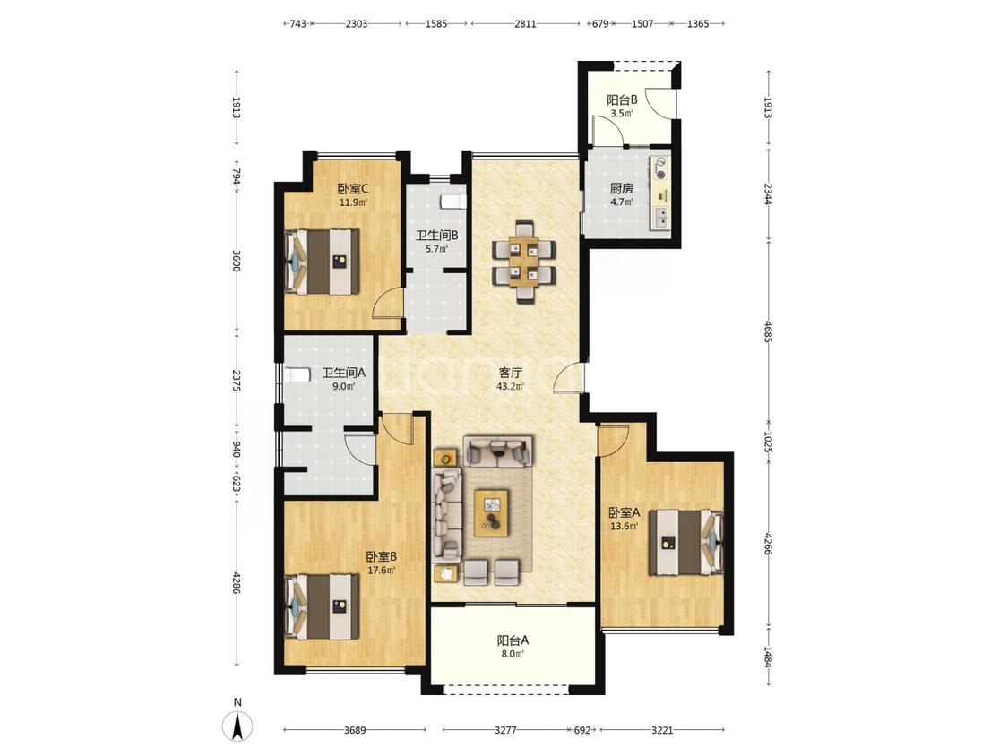 3室2厅 海航豪庭(北苑二区)