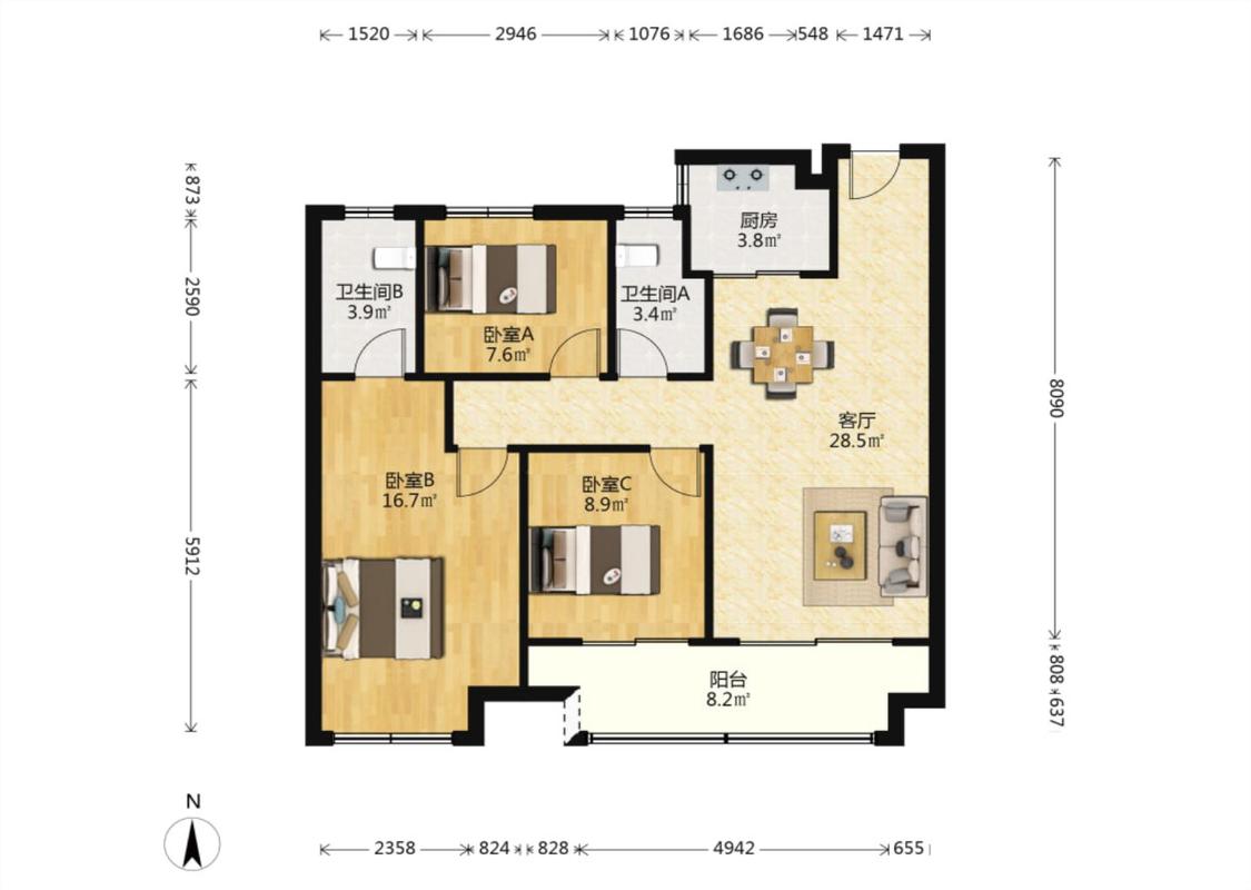 3室2厅