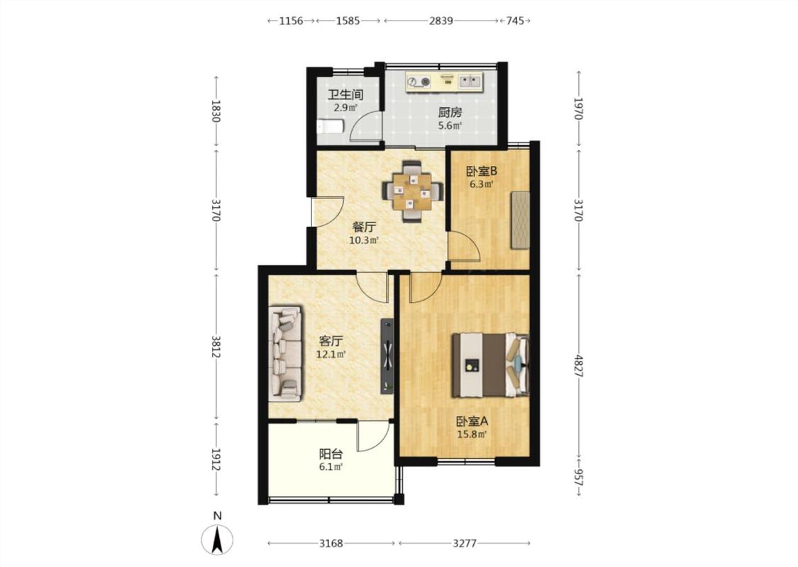 2室2厅 庆丰小区