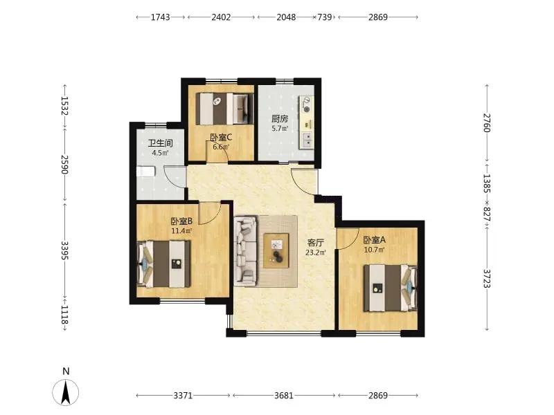3室1厅 天房美棠