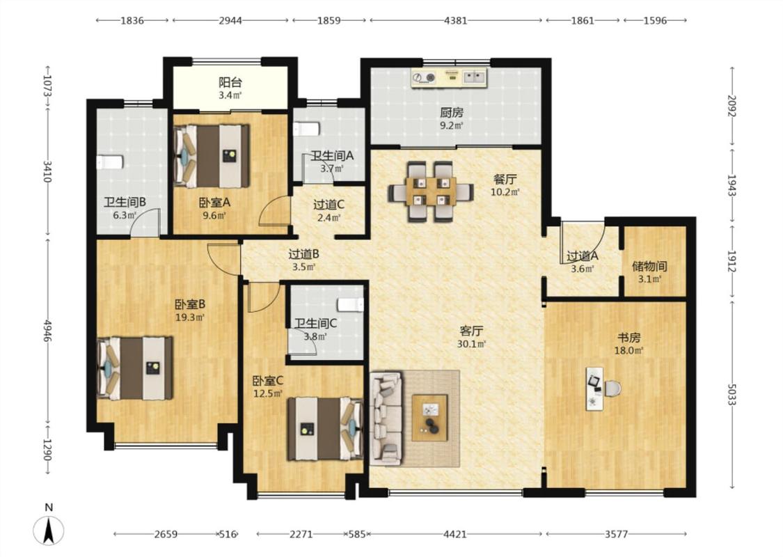 4室2厅 老城根蓝光雍锦世家