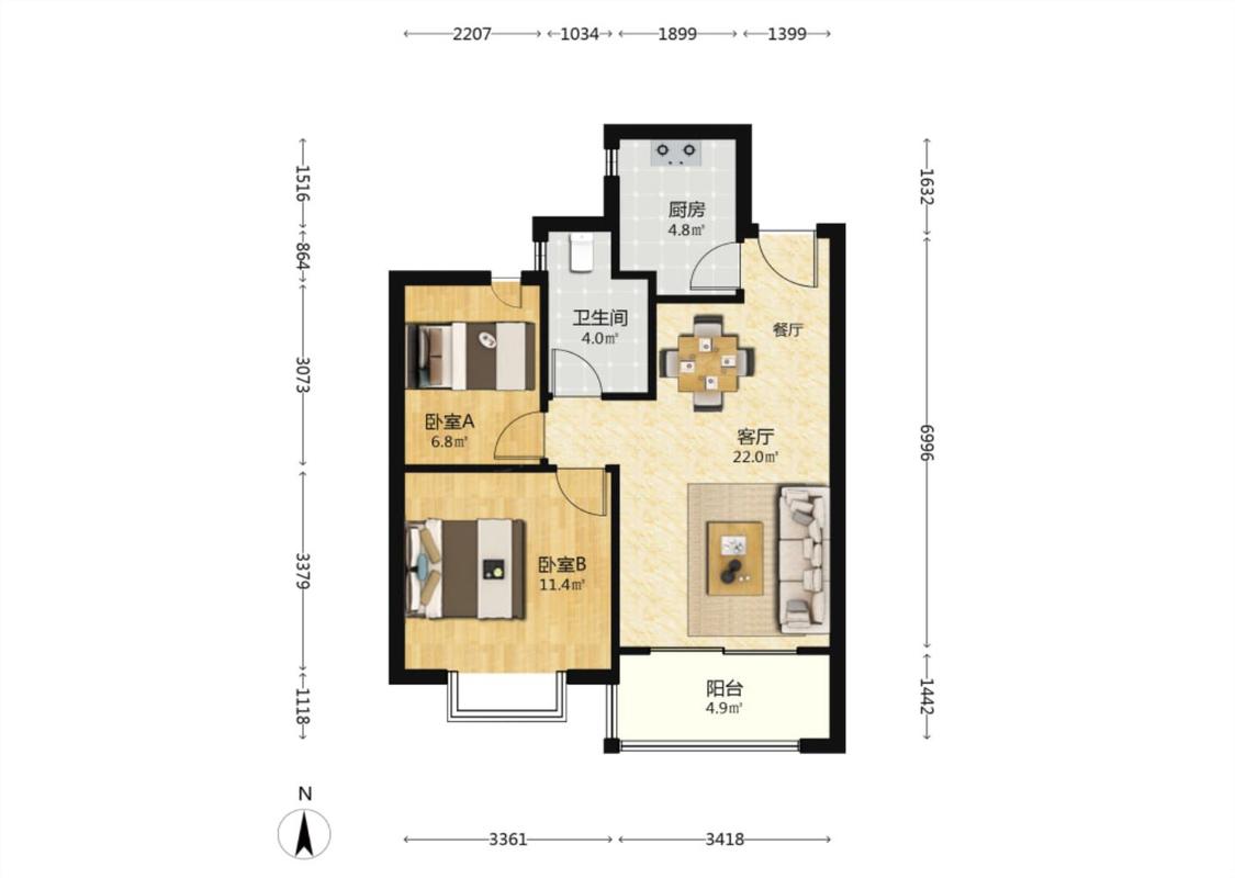 2室2厅 恒大滨河左岸(二期)