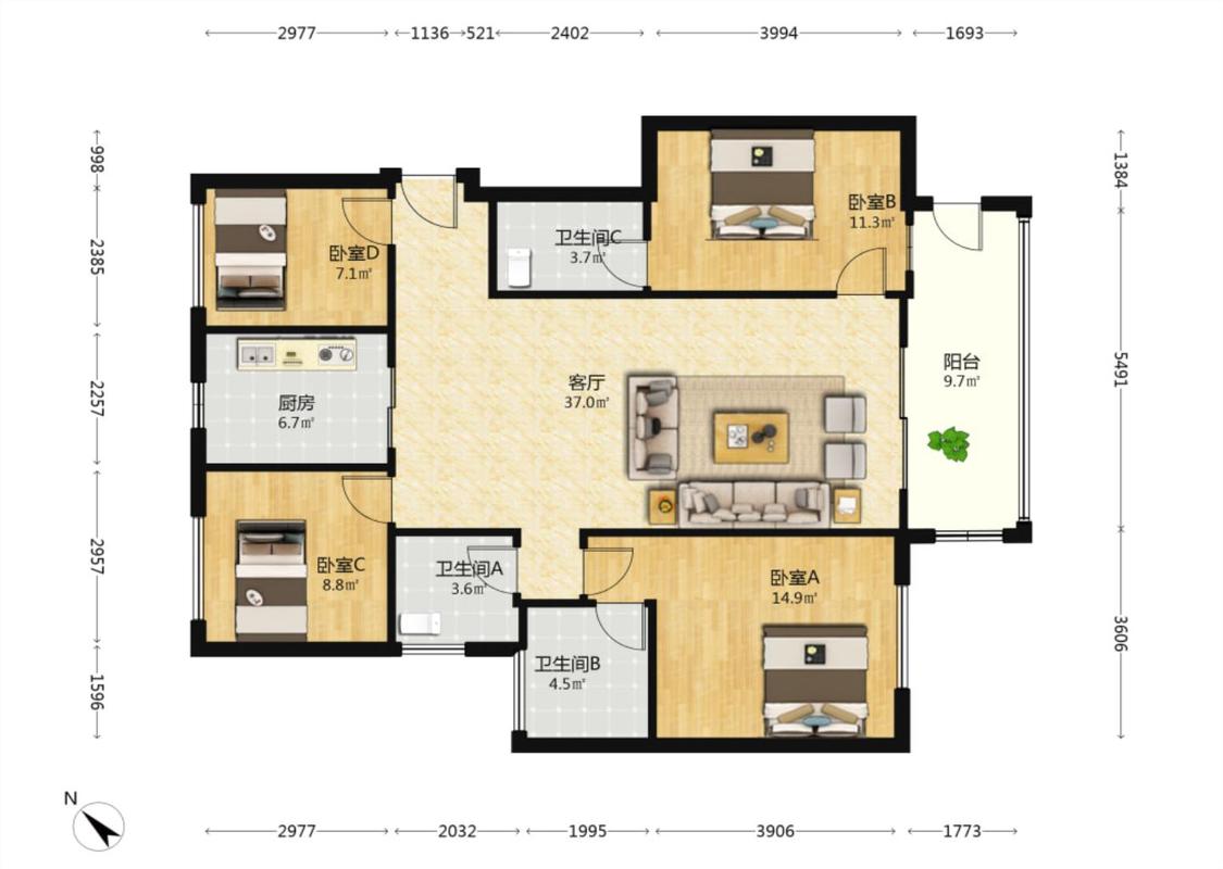 4室2厅 万科中央公园(一期)