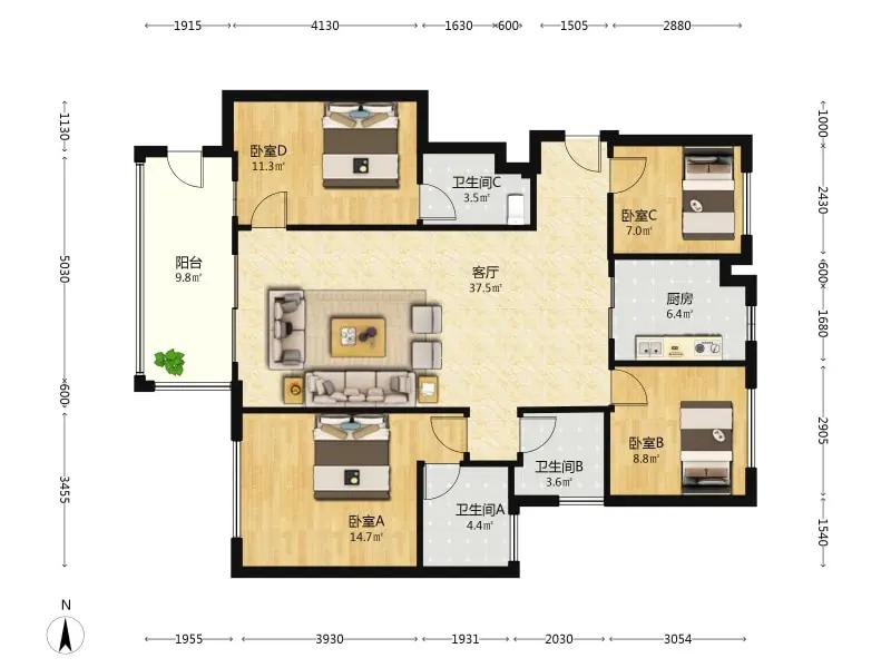4室2厅 万科中央公园