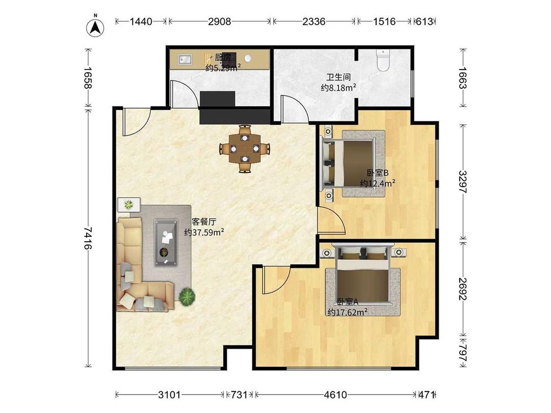 2室2厅 城市公元