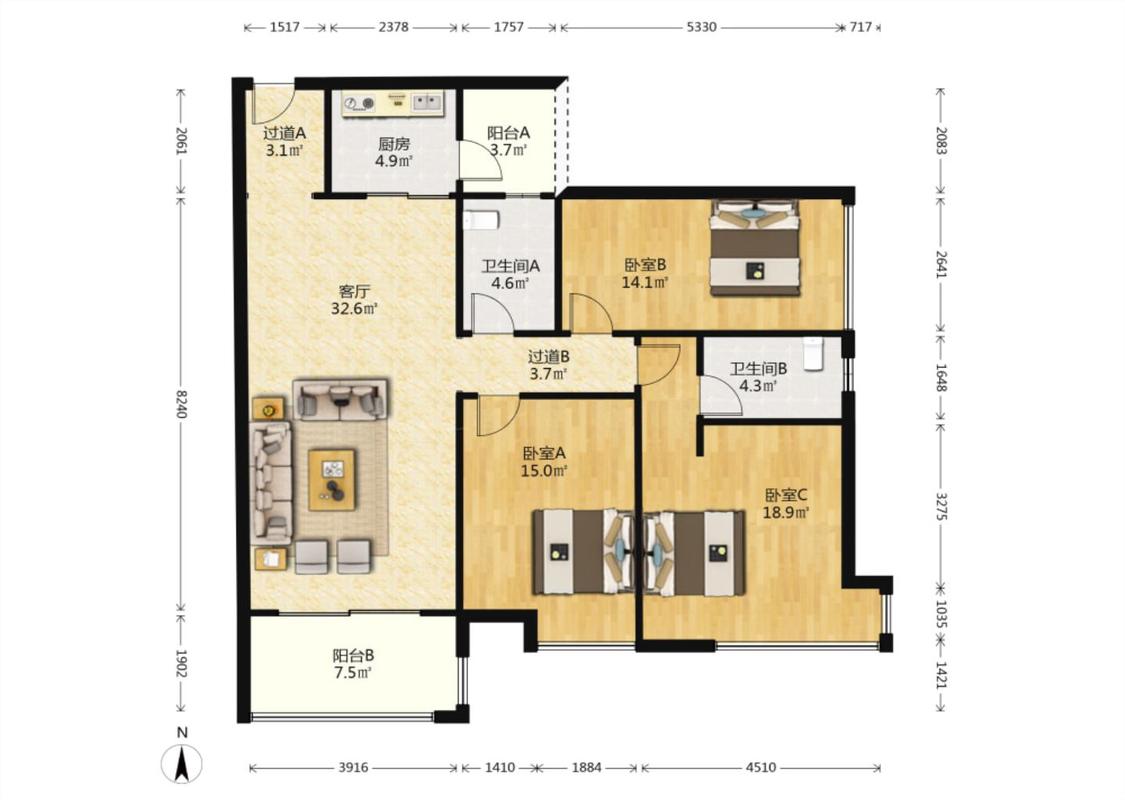 3室2厅 万科缤纷四季(北区)